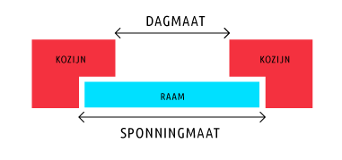 Meet gemakkelijk en snel uw ramen op. Om tot een prijsstelling te kunnen komen ontvangen wij graag de dagmaat (cm) van u ramen, dit is de maat gemeten vanaf de binnenkant van het kozijn. Van zowel de breedte van het raam als de hoogte van het raam.